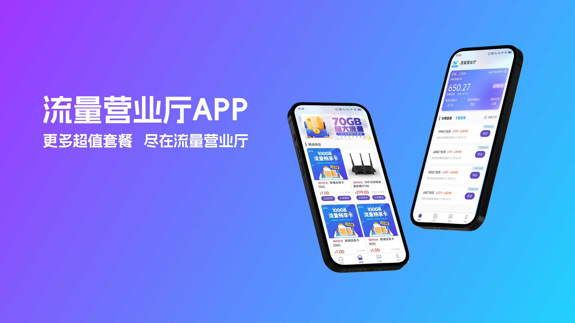 流量营业厅是河南醒梦网络科技有限公司推出的一款为指定用户提供流量充值的app,用户可以参与应用内发布的活动,使用更加优惠的价格进行流量